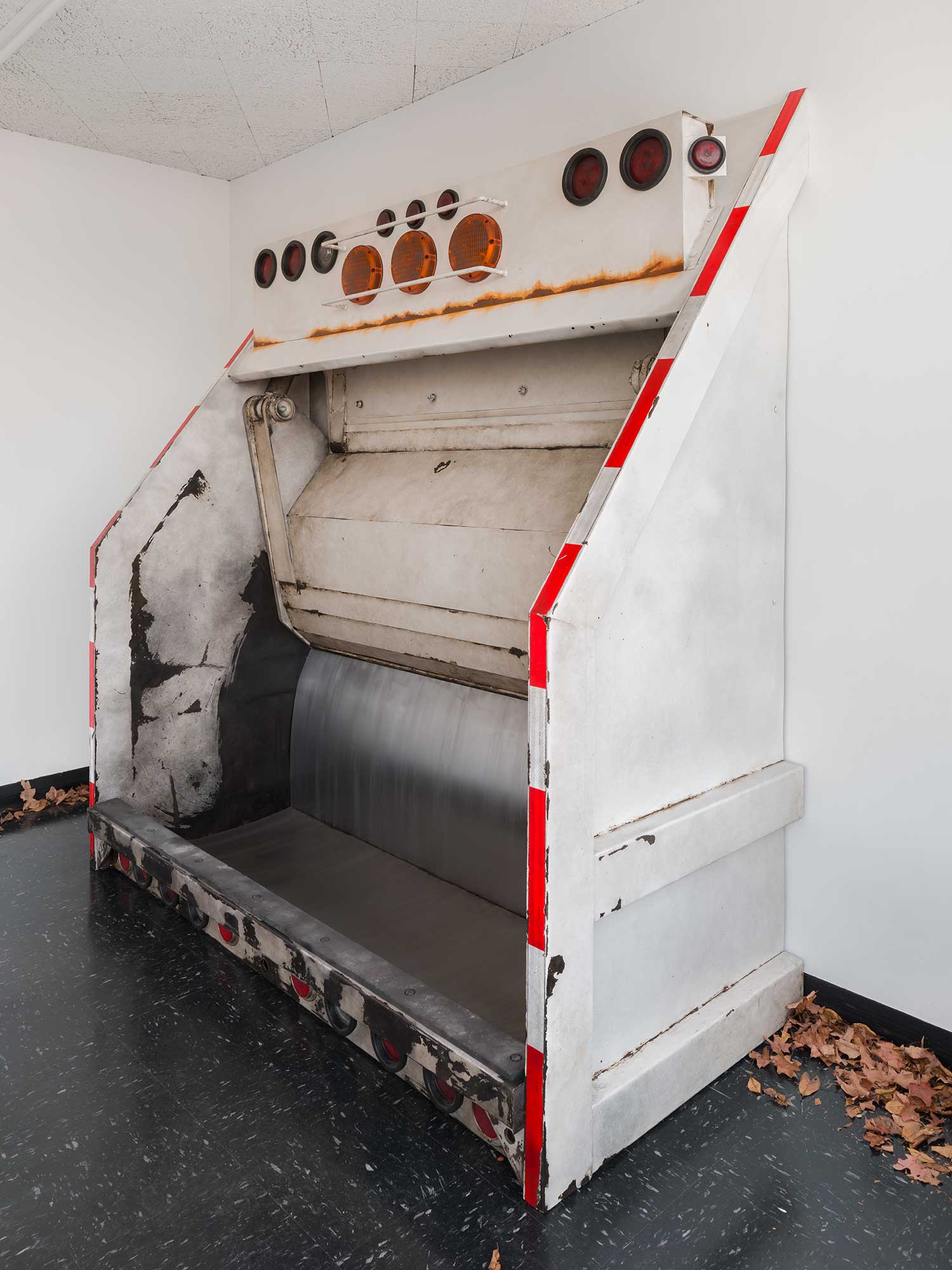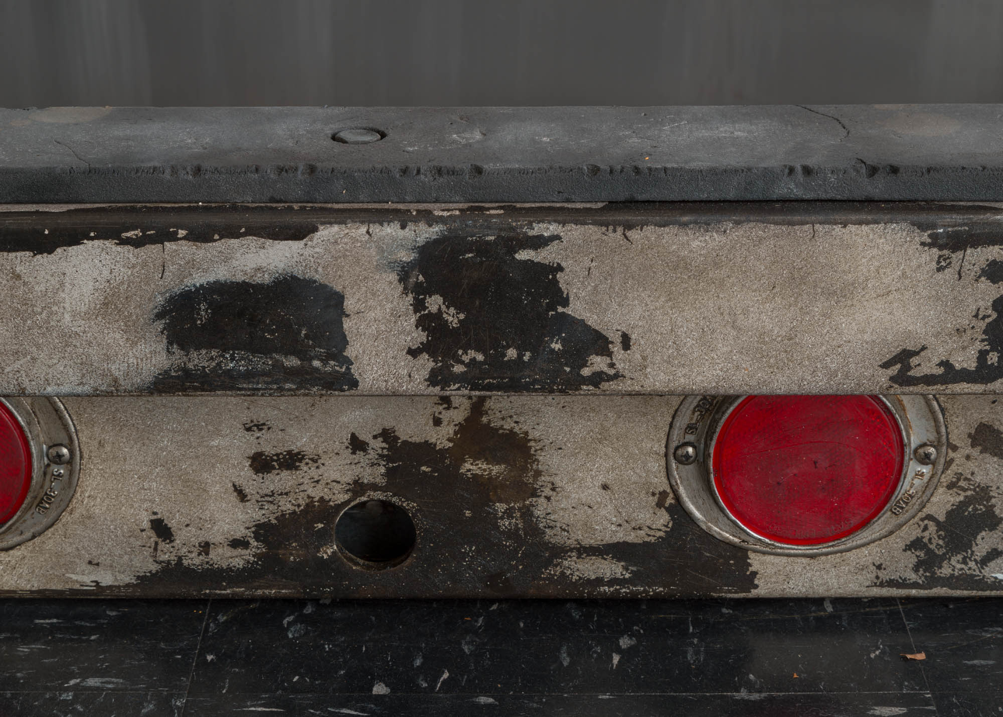 Motor oil, grease, and dust on rusted and painted steel, aluminum, wood, rubber, grommets, lenses,